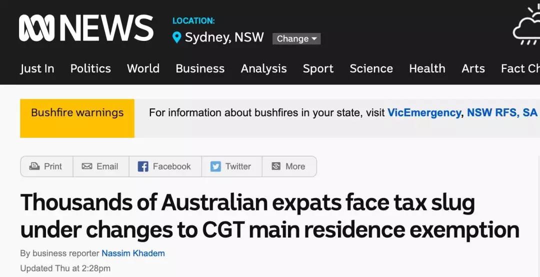 據ABC報道,上個月,澳洲聯邦參議院最終通過了針對海外居留人士的資本利得稅改革方案。該法取消了自1985年9月20日以來,對澳洲僑民的集體稅率豁免。