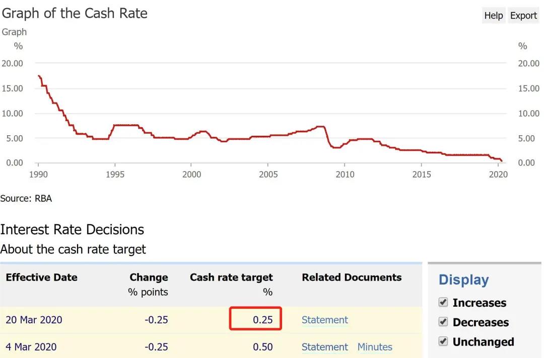 昨日,澳央行(RBA)緊急宣布再降息25個基點!至歷史最低點0.25%!3月20日生效。這是澳央行在3月4日降息25個基點至0.5%后,2020年的第二次降息。這也是去年6月至今,澳央行的第五次降息,再次刷新澳利率的歷史低點。