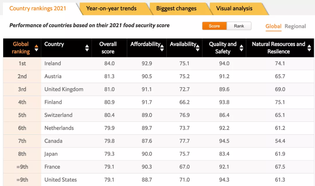 安全感滿滿!2021世界食品安全排名,愛爾蘭又拿冠軍了!