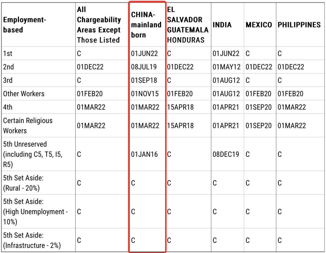 EB-5預(yù)留類別(鄉(xiāng)村項(xiàng)目、高失業(yè)率項(xiàng)目、基建項(xiàng)目):無排期