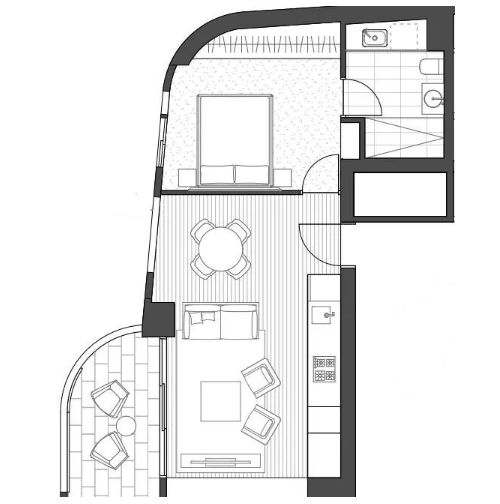 公寓大樓為92米高,采用26層布局,其中23層專門作住宅。King & Phillip為住戶提供由青銅色玻璃裝飾的天臺花園。