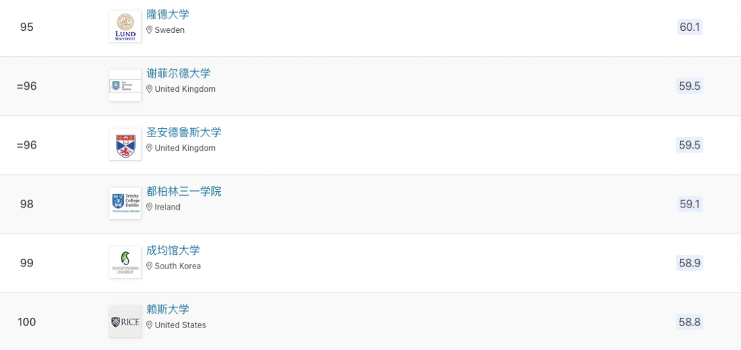 以下為世界前100所大學(xué)排名: