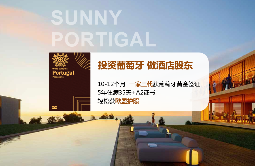 永銘國際精選葡萄牙里斯本、波爾圖、阿爾加維等熱門旅游地五星級(jí)酒店投資項(xiàng)目,投資28萬歐起,一家三代獲葡萄牙黃金簽證。無持有成本、無酒店管理稅費(fèi)、無需自己打理、提供每年7天免費(fèi)住宿。