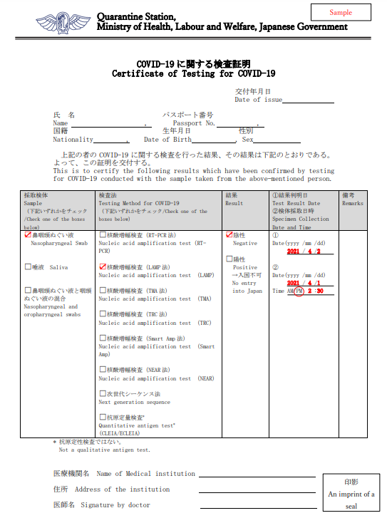 需要向檢疫所提交一份“出發前72小時內的核酸檢測報告”,具體的格式參考下圖:
