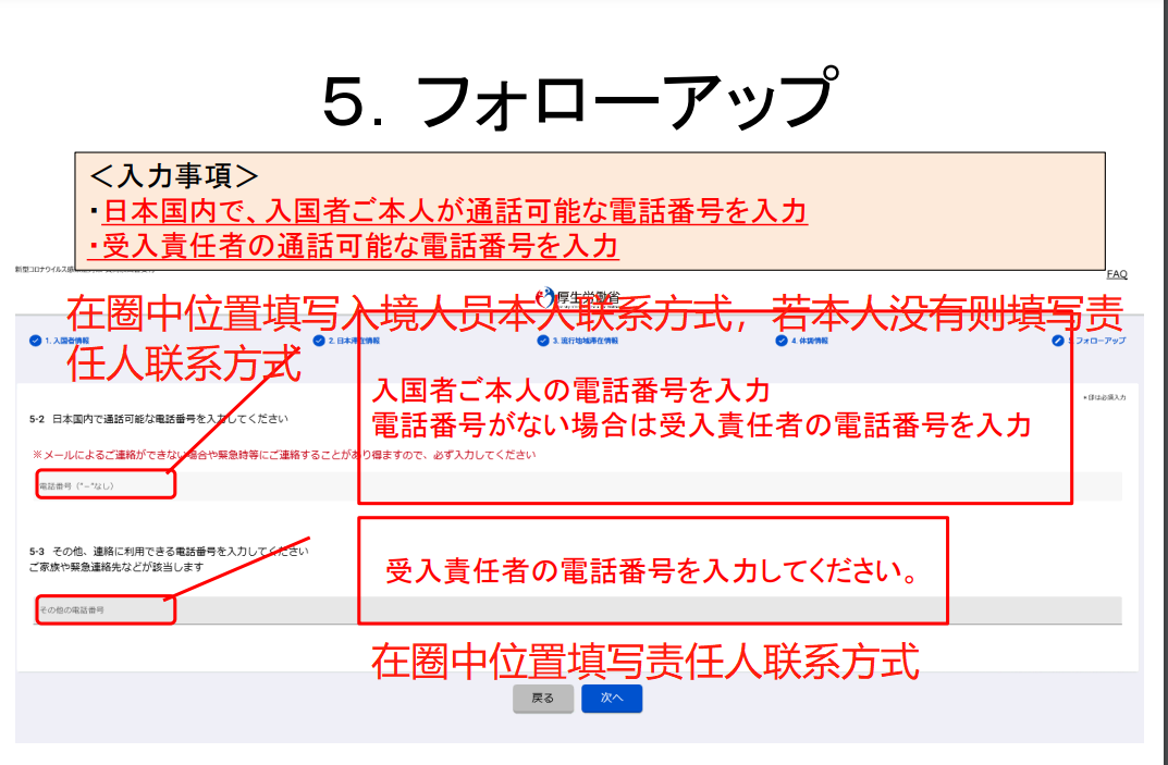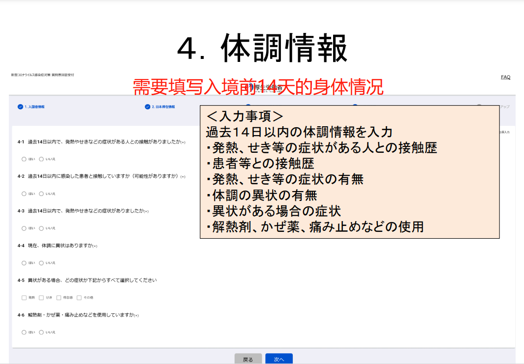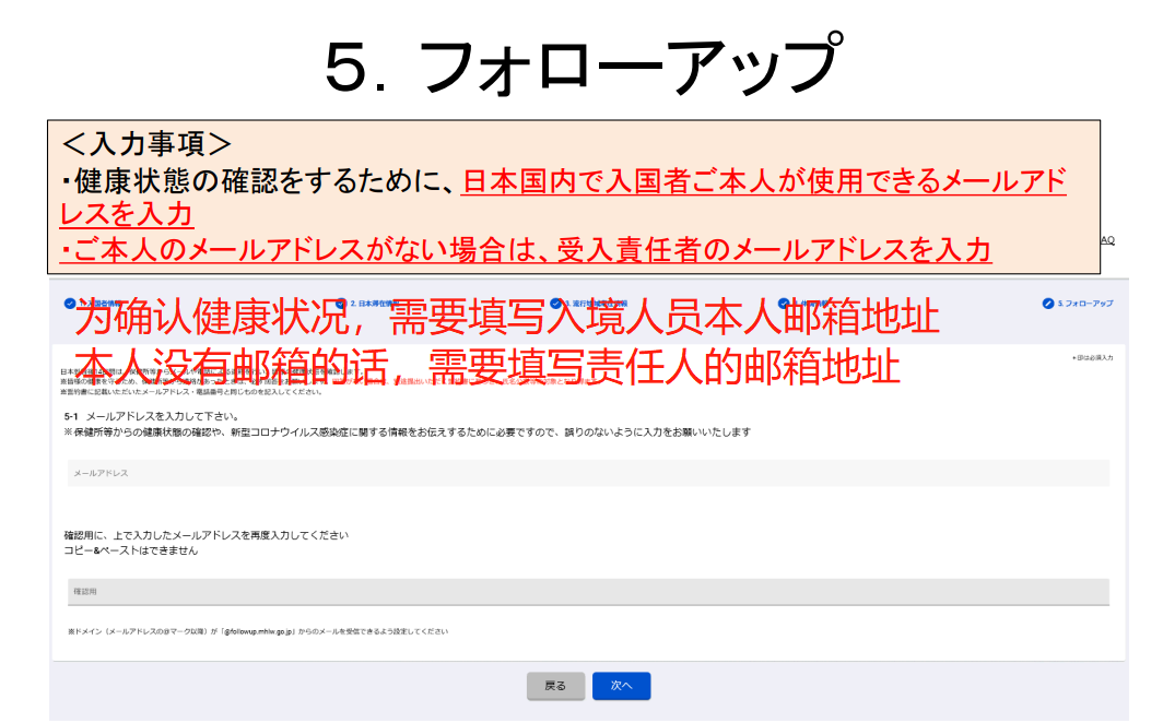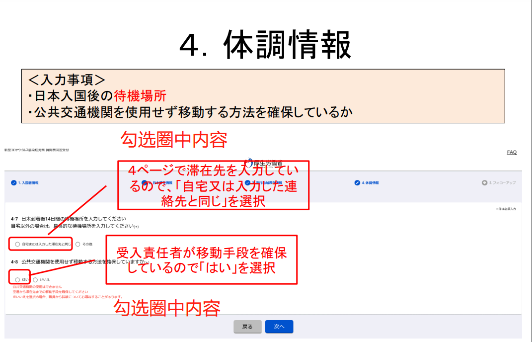 5)通過MySOS,向厚生勞動省“入境者健康確認中心”通報健康狀況及所在地。