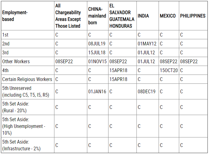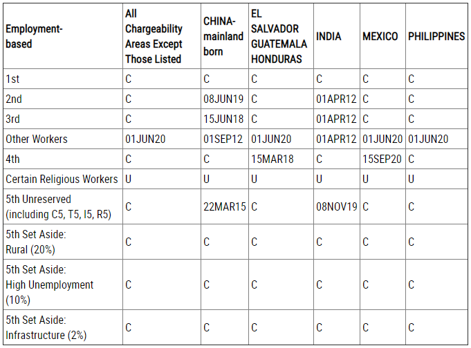 EB-5預(yù)留類別(農(nóng)村項(xiàng)目、高失業(yè)率項(xiàng)目、基建項(xiàng)目):無(wú)排期。
